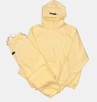 This two‑piece tracksuit includes a relaxed fit hoodie and matching joggers, both made from a soft cotton‑blend jersey with a cozy fleece interior that keeps you warm without feeling heavy. Check out the latest collection of essentials hoodie. The Fear Of God Essentials Canary Tracksuit is a premium streetwear set designed for comfort, style, and everyday wear. The striking canary yellow colorway makes this set a standout piece, while the minimalist yet bold Essentials branding adds a fashion‑forward touch. With its oversized silhouette and meticulous tailoring, this tracksuit is perfect for casual outings, lounging, or layering with other wardrobe essentials.