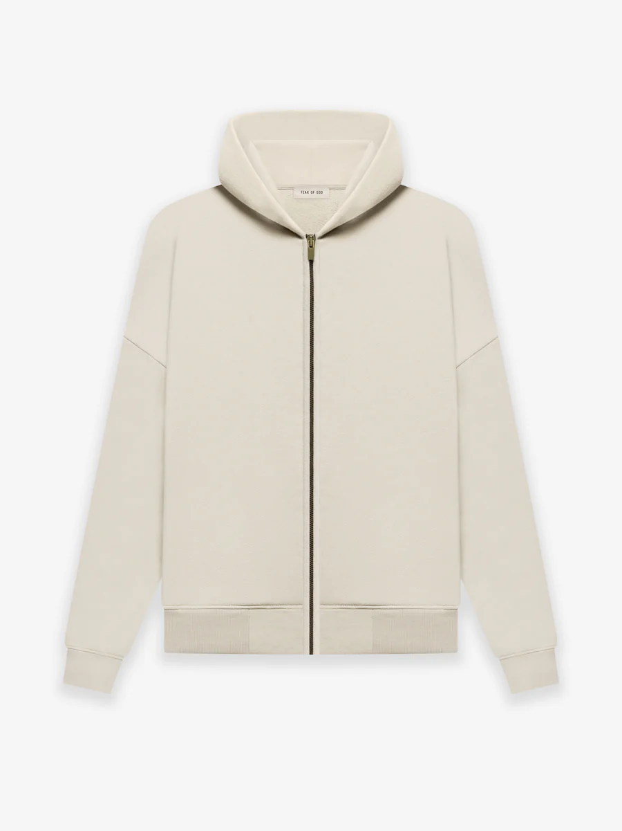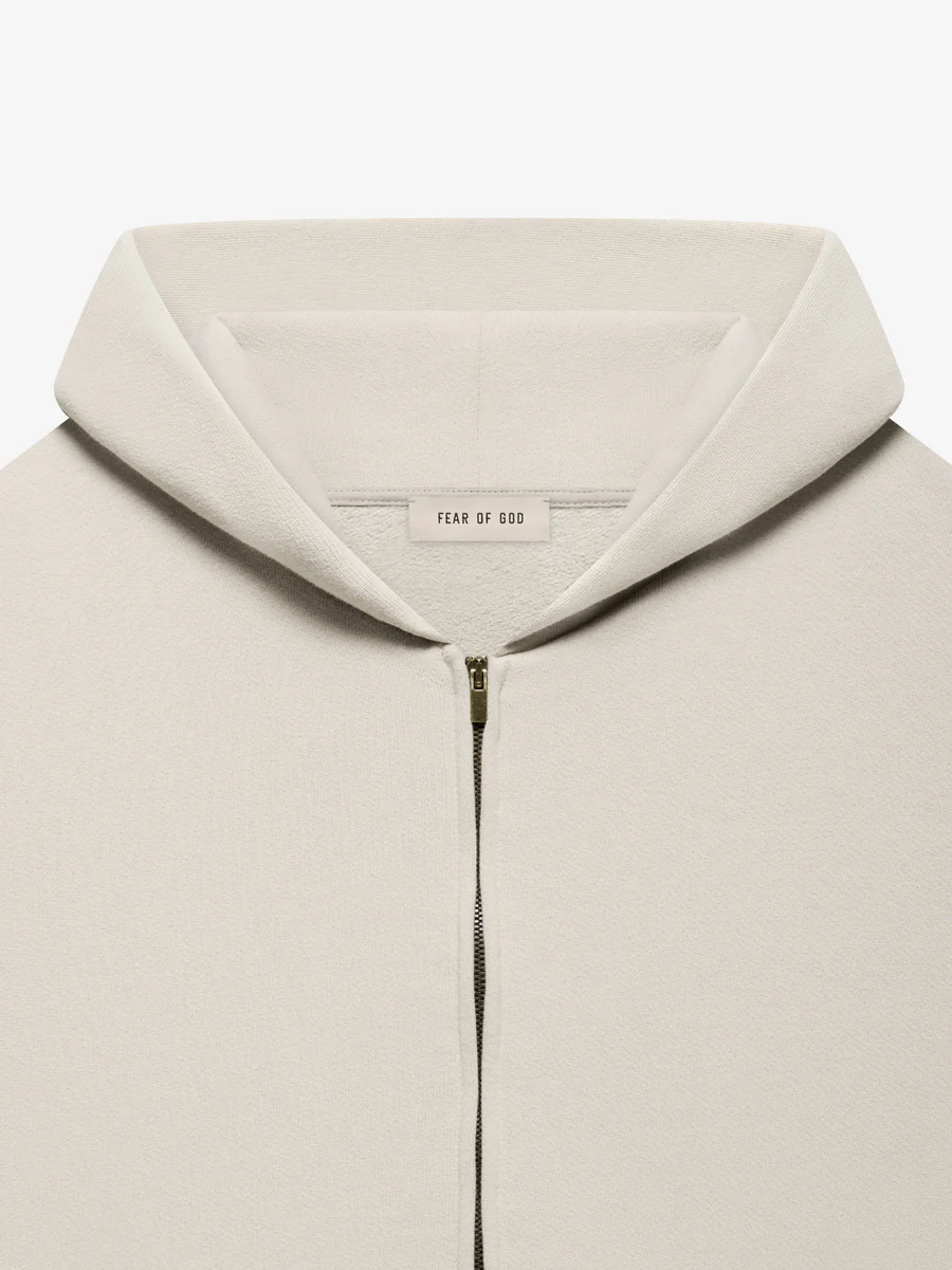 Designed with a relaxed, oversized silhouette and meticulous attention to detail, this hoodie features a full‑length front zipper, a double‑layered hood, and rib‑knit cuffs and hem for structure and comfort. Check out the latest collection of essentials hoodie. The Fear of God Fleece Zip Up Hoodie in Cement is a premium heavyweight zip‑up hoodie that combines luxury streetwear aesthetics with elevated manufacturing. Its minimalist design and neutral cement tone make it an effortless wardrobe staple that pairs seamlessly with casual and elevated outfits alike. The Fear of God label at the hood adds an understated signature touch.